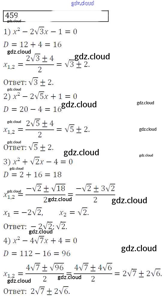 Ответ на задание 459 Учебник Алгебра за 8 (восьмой) класс Колягин, Ткачева, Федорова, Шабунин УМК 2013 ФГОС онлайн и без номера телефона.