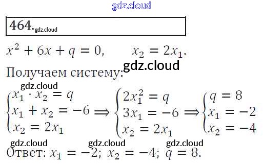Ответ на задание 464 Учебник Алгебра за 8 (восьмой) класс Колягин, Ткачева, Федорова, Шабунин УМК 2013 ФГОС онлайн и без номера телефона.