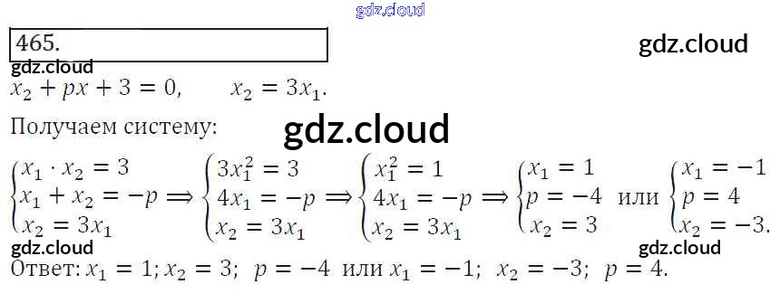 Ответ на задание 465 Учебник Алгебра за 8 (восьмой) класс Колягин, Ткачева, Федорова, Шабунин УМК 2013 ФГОС онлайн и без номера телефона.
