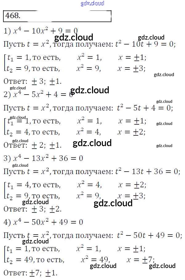 Ответ на задание 468 Учебник Алгебра за 8 (восьмой) класс Колягин, Ткачева, Федорова, Шабунин УМК 2013 ФГОС онлайн и без номера телефона.