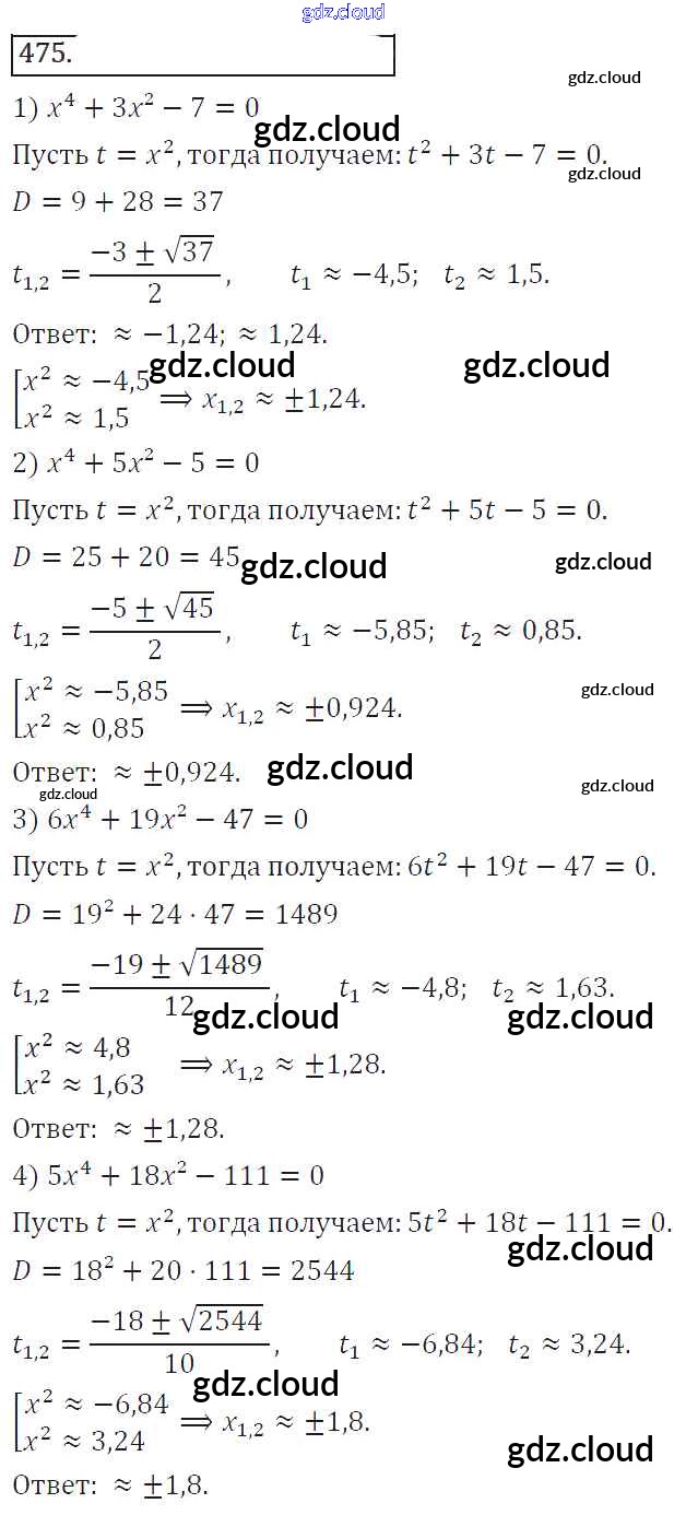 Ответ на задание 475 Учебник Алгебра за 8 (восьмой) класс Колягин, Ткачева, Федорова, Шабунин УМК 2013 ФГОС онлайн и без номера телефона.