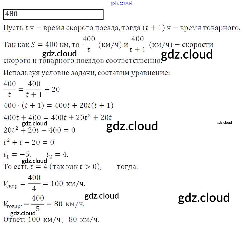 Ответ на задание 480 Учебник Алгебра за 8 (восьмой) класс Колягин, Ткачева, Федорова, Шабунин УМК 2013 ФГОС онлайн и без номера телефона.