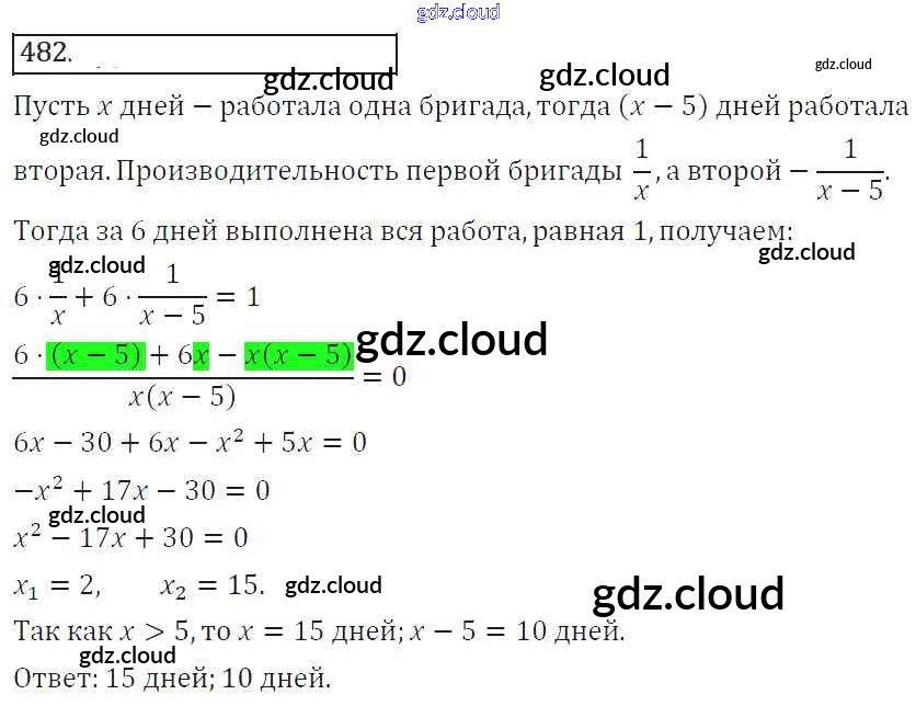 Ответ на задание 482 Учебник Алгебра за 8 (восьмой) класс Колягин, Ткачева, Федорова, Шабунин УМК 2013 ФГОС онлайн и без номера телефона.