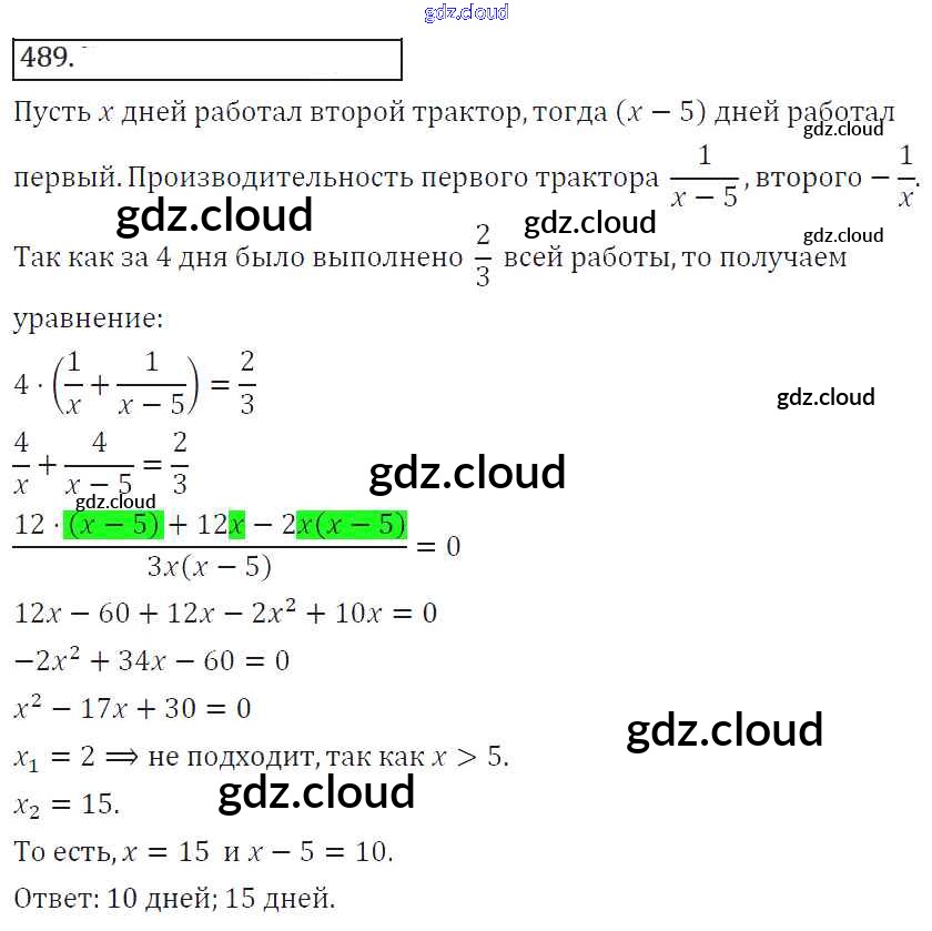 Ответ на задание 489 Учебник Алгебра за 8 (восьмой) класс Колягин, Ткачева, Федорова, Шабунин УМК 2013 ФГОС онлайн и без номера телефона.