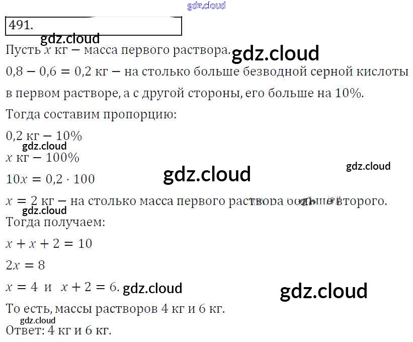 Ответ на задание 491 Учебник Алгебра за 8 (восьмой) класс Колягин, Ткачева, Федорова, Шабунин УМК 2013 ФГОС онлайн и без номера телефона.