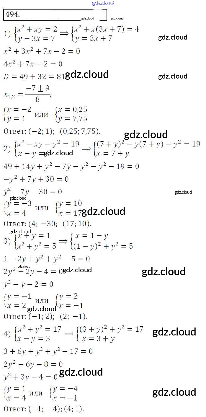 Ответ на задание 494 Учебник Алгебра за 8 (восьмой) класс Колягин, Ткачева, Федорова, Шабунин УМК 2013 ФГОС онлайн и без номера телефона.
