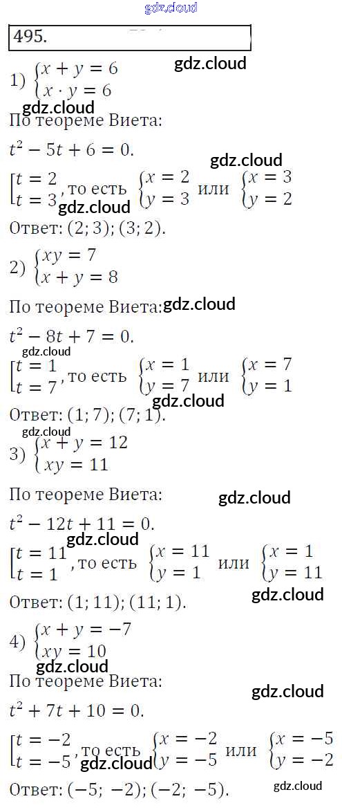 Ответ на задание 495 Учебник Алгебра за 8 (восьмой) класс Колягин, Ткачева, Федорова, Шабунин УМК 2013 ФГОС онлайн и без номера телефона.