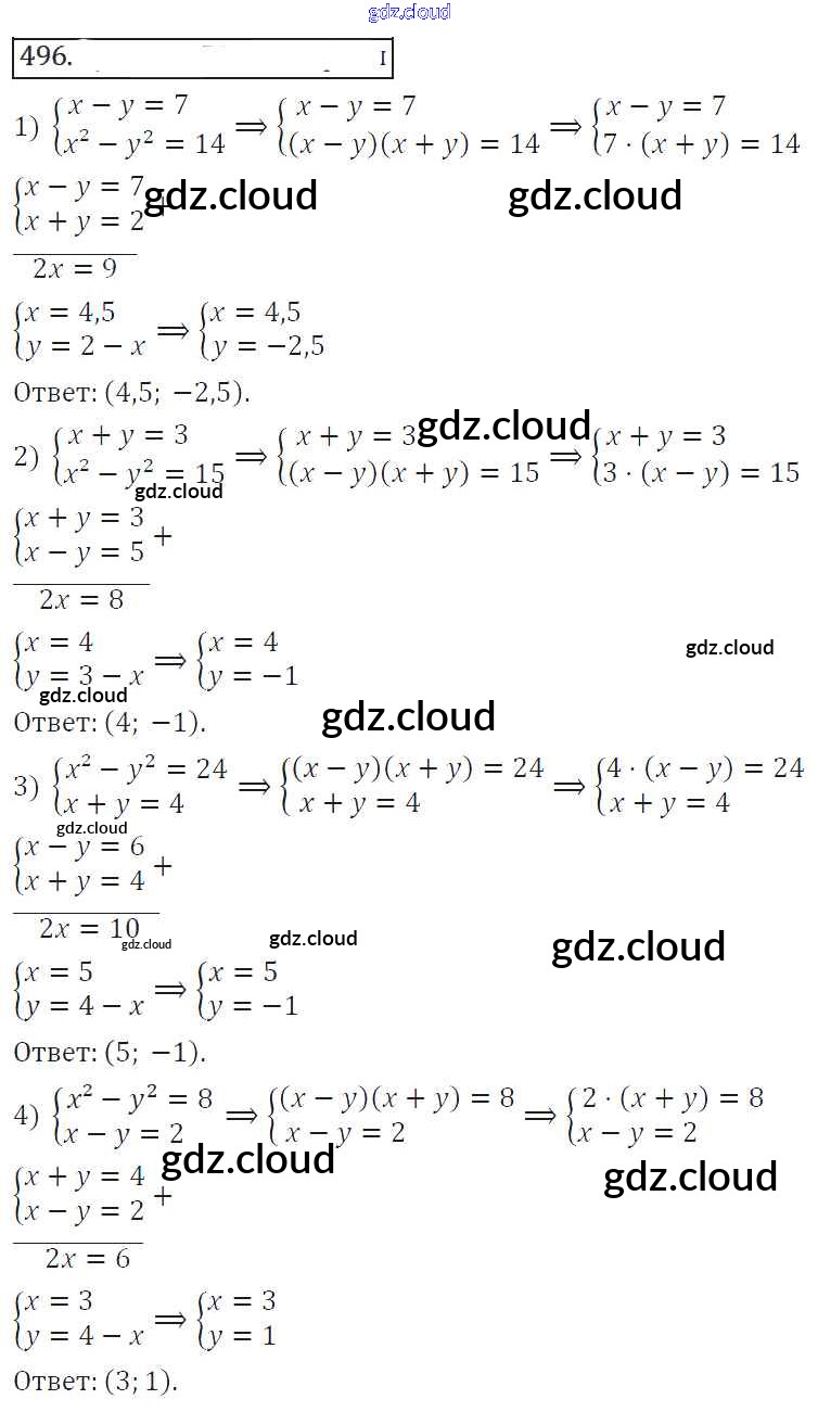 Ответ на задание 496 Учебник Алгебра за 8 (восьмой) класс Колягин, Ткачева, Федорова, Шабунин УМК 2013 ФГОС онлайн и без номера телефона.