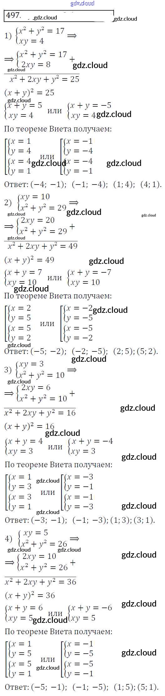 Ответ на задание 497 Учебник Алгебра за 8 (восьмой) класс Колягин, Ткачева, Федорова, Шабунин УМК 2013 ФГОС онлайн и без номера телефона.