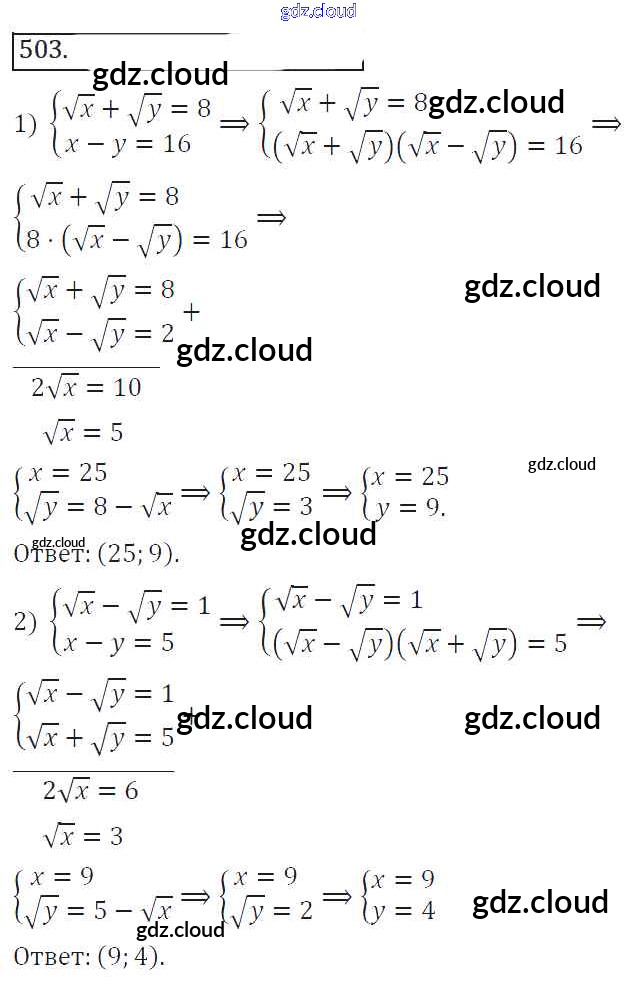 Ответ на задание 503 Учебник Алгебра за 8 (восьмой) класс Колягин, Ткачева, Федорова, Шабунин УМК 2013 ФГОС онлайн и без номера телефона.