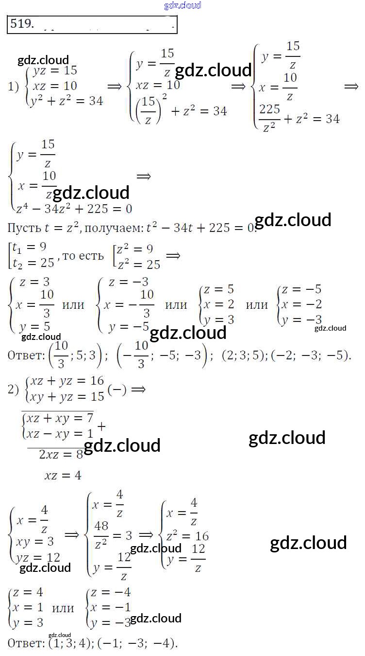 Ответ на задание 519 Учебник Алгебра за 8 (восьмой) класс Колягин, Ткачева, Федорова, Шабунин УМК 2013 ФГОС онлайн и без номера телефона.