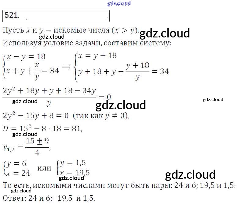 Ответ на задание 521 Учебник Алгебра за 8 (восьмой) класс Колягин, Ткачева, Федорова, Шабунин УМК 2013 ФГОС онлайн и без номера телефона.