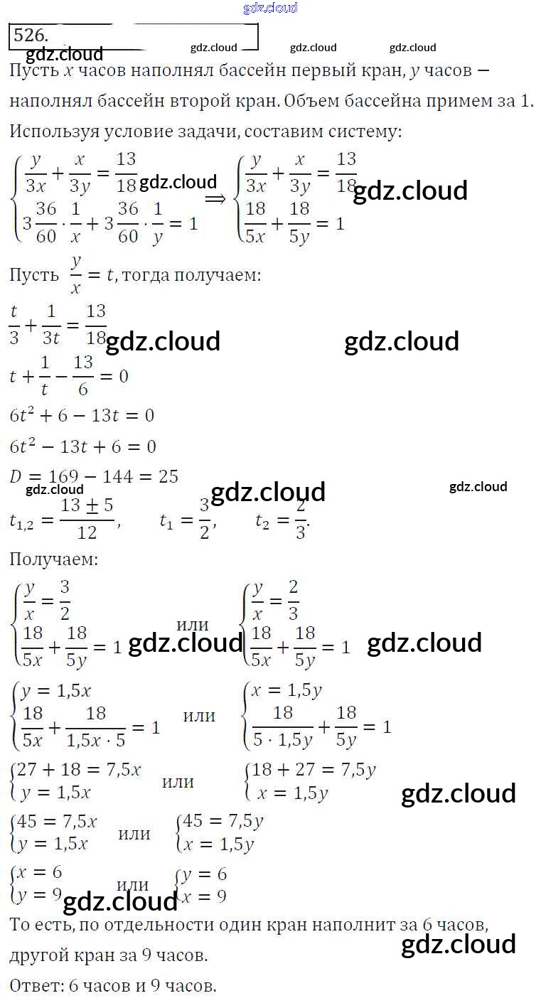 Ответ на задание 526 Учебник Алгебра за 8 (восьмой) класс Колягин, Ткачева, Федорова, Шабунин УМК 2013 ФГОС онлайн и без номера телефона.