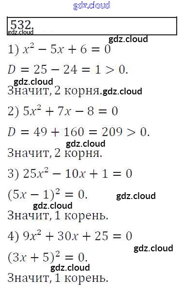 Ответ на задание 532 Учебник Алгебра за 8 (восьмой) класс Колягин, Ткачева, Федорова, Шабунин УМК 2013 ФГОС онлайн и без номера телефона.