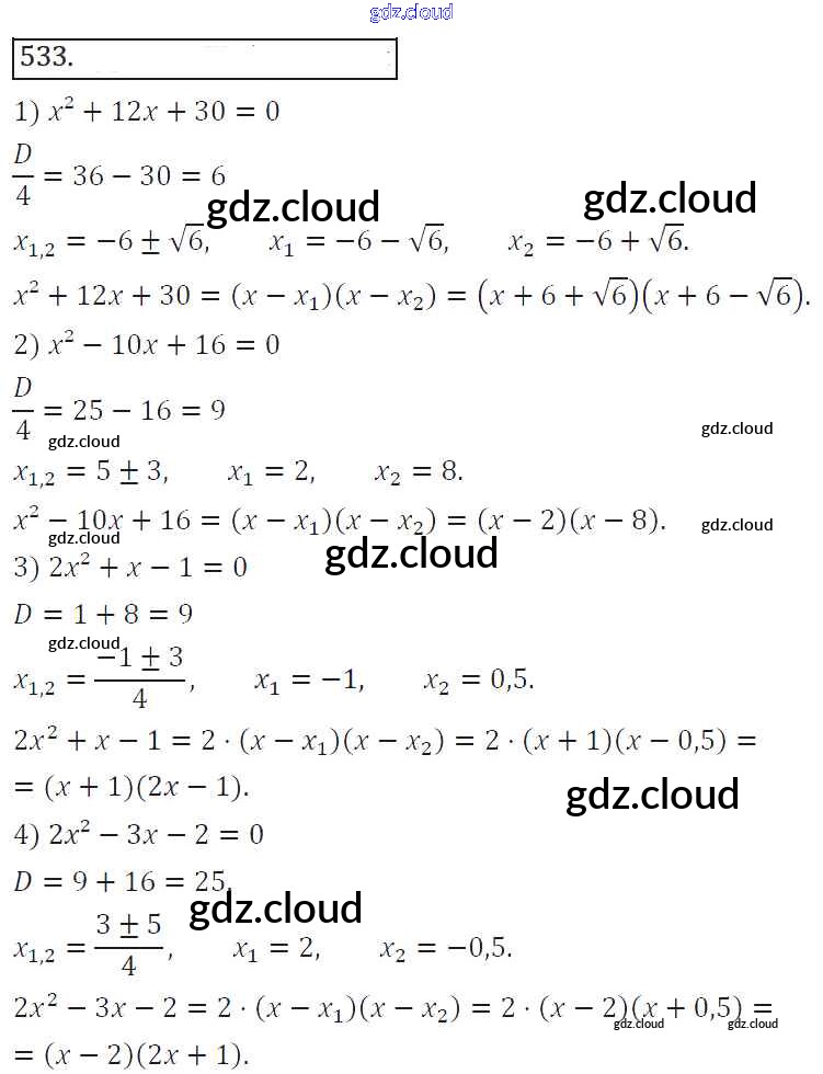 Ответ на задание 533 Учебник Алгебра за 8 (восьмой) класс Колягин, Ткачева, Федорова, Шабунин УМК 2013 ФГОС онлайн и без номера телефона.