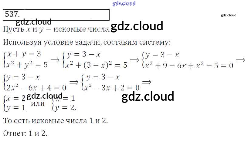 Ответ на задание 537 Учебник Алгебра за 8 (восьмой) класс Колягин, Ткачева, Федорова, Шабунин УМК 2013 ФГОС онлайн и без номера телефона.
