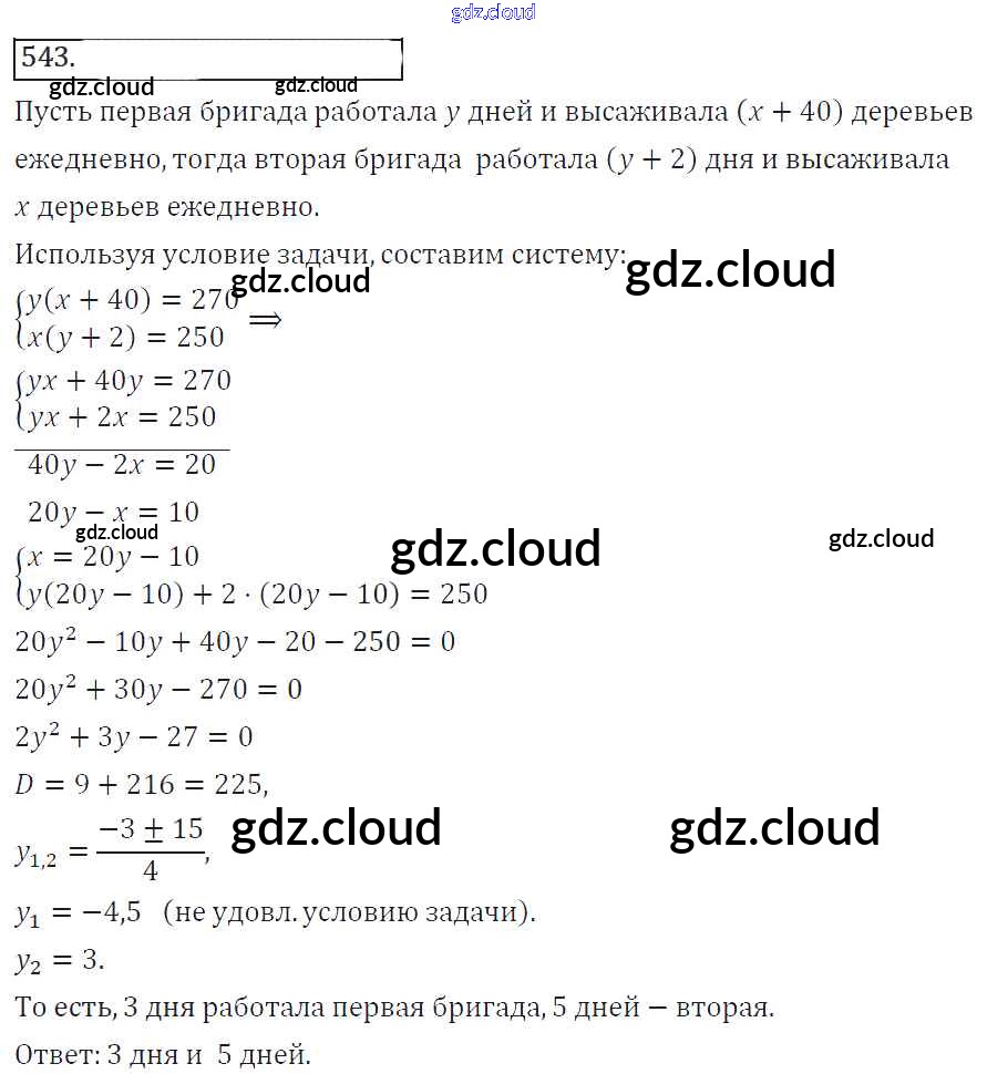 Ответ на задание 543 Учебник Алгебра за 8 (восьмой) класс Колягин, Ткачева, Федорова, Шабунин УМК 2013 ФГОС онлайн и без номера телефона.