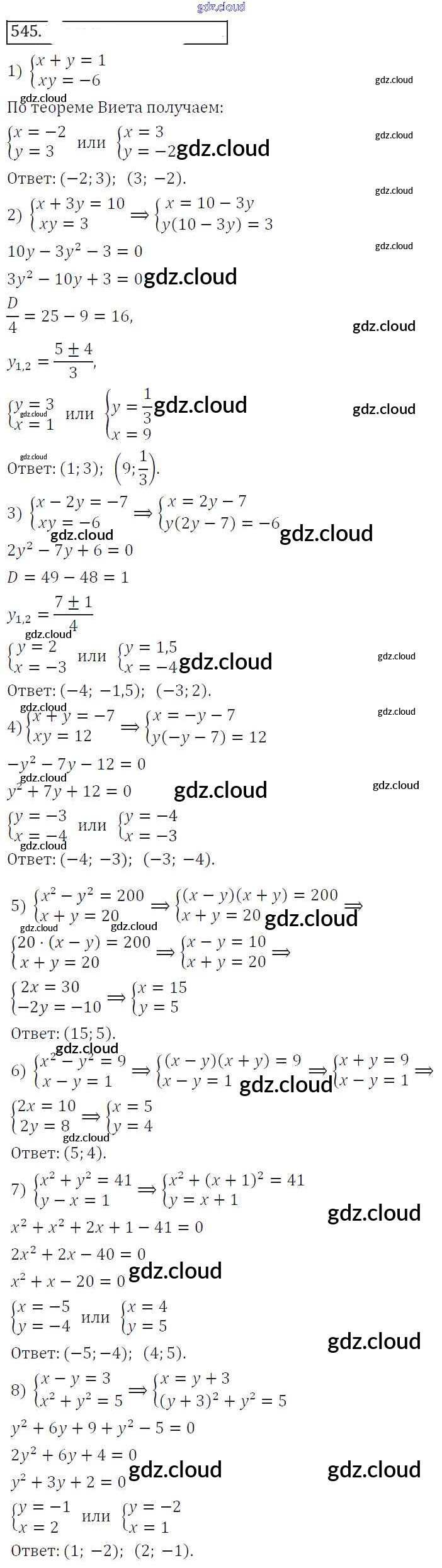 Ответ на задание 545 Учебник Алгебра за 8 (восьмой) класс Колягин, Ткачева, Федорова, Шабунин УМК 2013 ФГОС онлайн и без номера телефона.