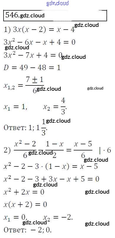 Ответ на задание 546 Учебник Алгебра за 8 (восьмой) класс Колягин, Ткачева, Федорова, Шабунин УМК 2013 ФГОС онлайн и без номера телефона.