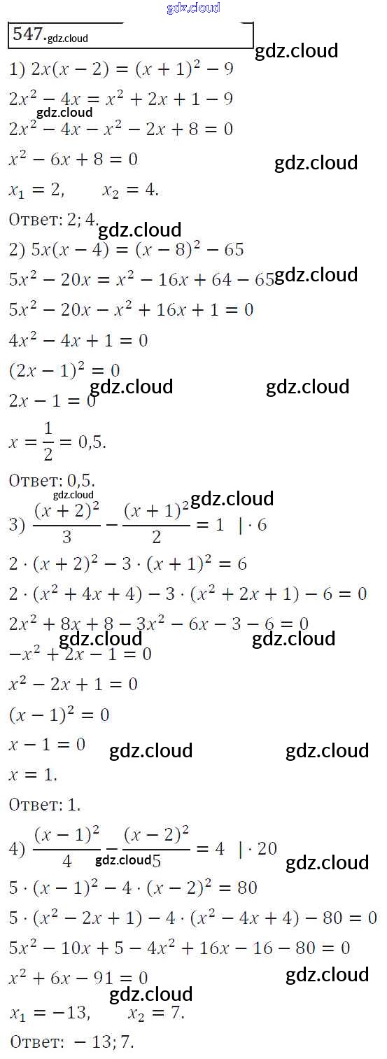 Ответ на задание 547 Учебник Алгебра за 8 (восьмой) класс Колягин, Ткачева, Федорова, Шабунин УМК 2013 ФГОС онлайн и без номера телефона.