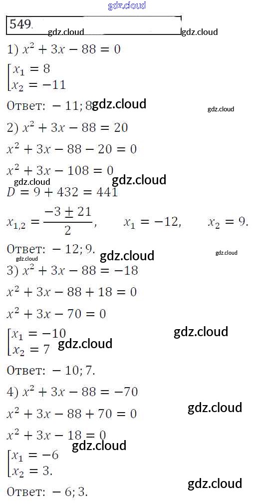 Ответ на задание 549 Учебник Алгебра за 8 (восьмой) класс Колягин, Ткачева, Федорова, Шабунин УМК 2013 ФГОС онлайн и без номера телефона.