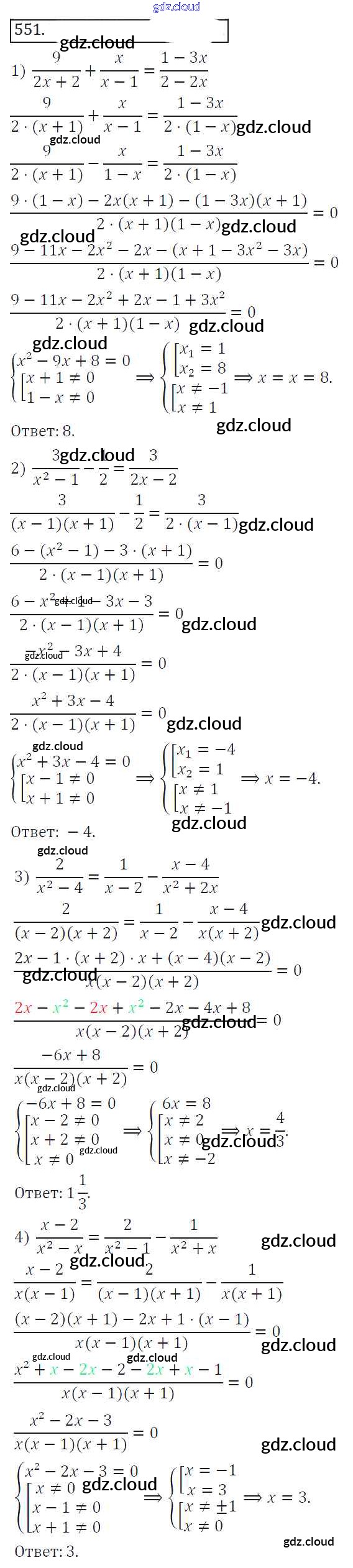 Ответ на задание 551 Учебник Алгебра за 8 (восьмой) класс Колягин, Ткачева, Федорова, Шабунин УМК 2013 ФГОС онлайн и без номера телефона.