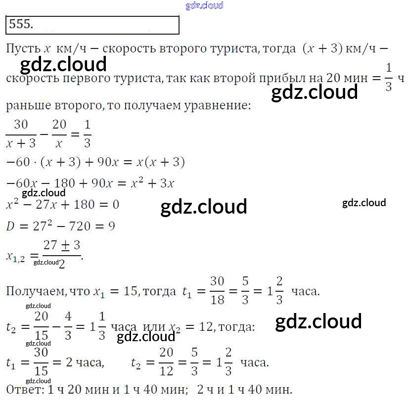 Ответ на задание 555 Учебник Алгебра за 8 (восьмой) класс Колягин, Ткачева, Федорова, Шабунин УМК 2013 ФГОС онлайн и без номера телефона.