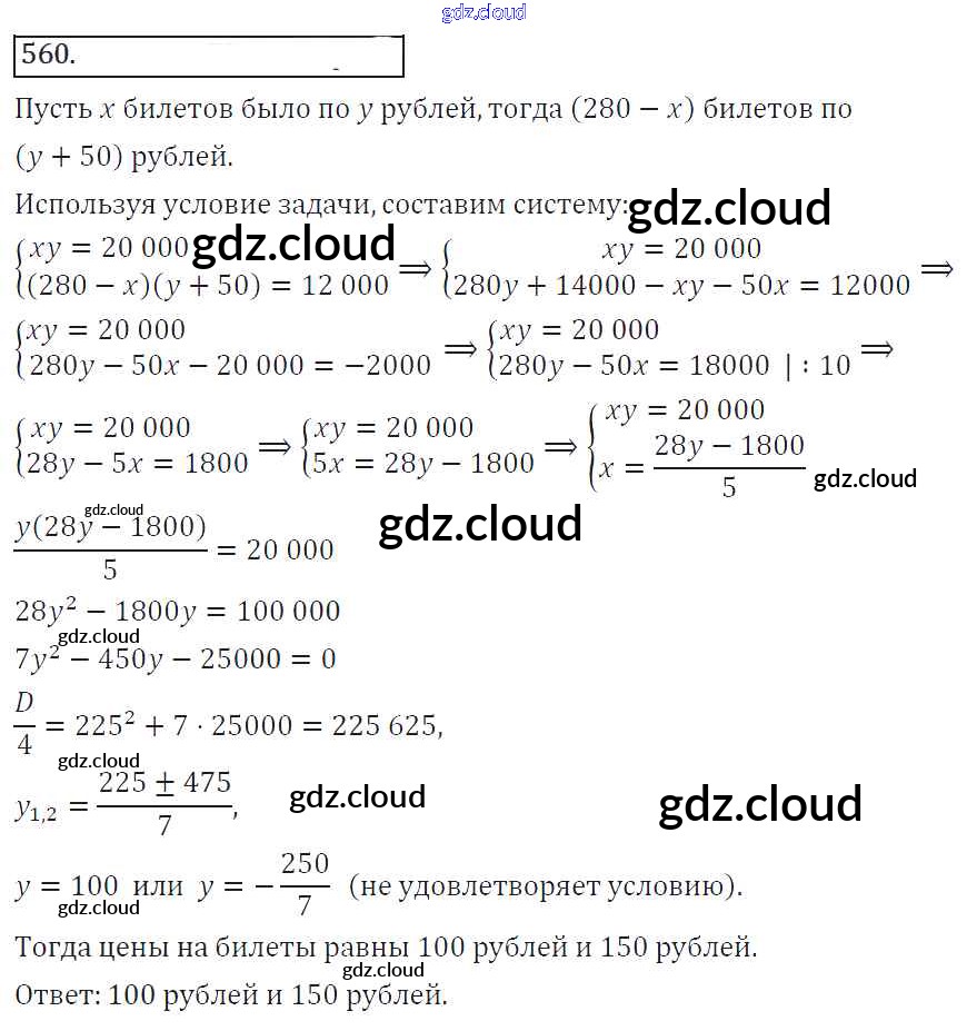 Ответ на задание 560 Учебник Алгебра за 8 (восьмой) класс Колягин, Ткачева, Федорова, Шабунин УМК 2013 ФГОС онлайн и без номера телефона.