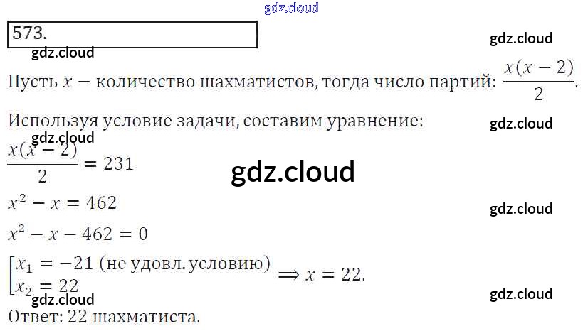 Ответ на задание 573 Учебник Алгебра за 8 (восьмой) класс Колягин, Ткачева, Федорова, Шабунин УМК 2013 ФГОС онлайн и без номера телефона.