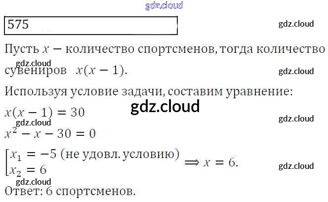 Ответ на задание 575 Учебник Алгебра за 8 (восьмой) класс Колягин, Ткачева, Федорова, Шабунин УМК 2013 ФГОС онлайн и без номера телефона.