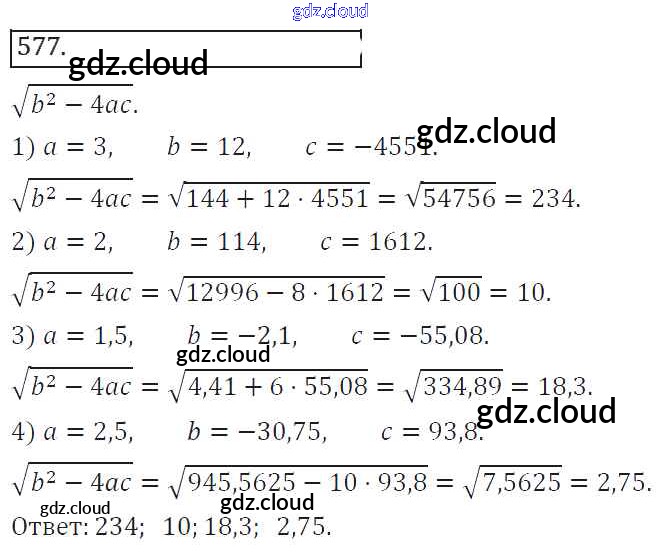 Ответ на задание 577 Учебник Алгебра за 8 (восьмой) класс Колягин, Ткачева, Федорова, Шабунин УМК 2013 ФГОС онлайн и без номера телефона.