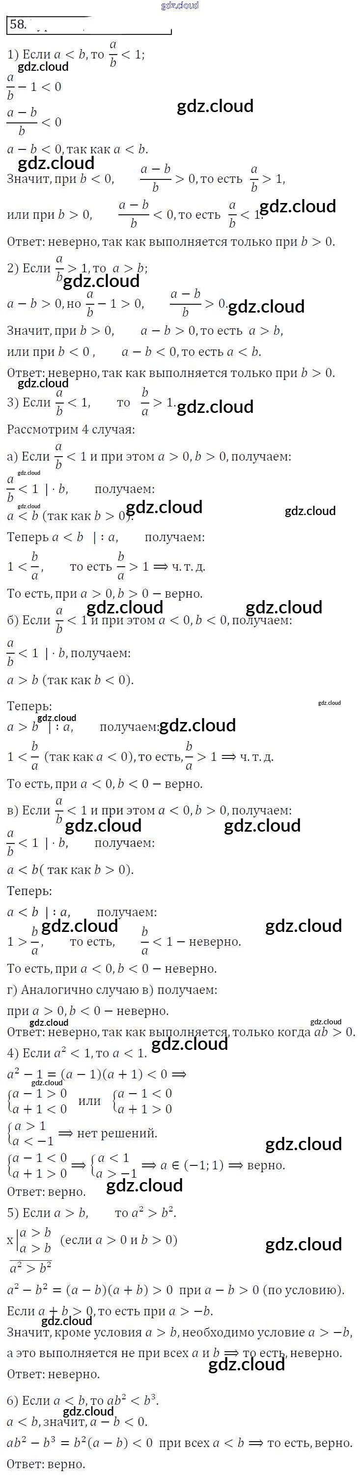 Ответ на задание 58 Учебник Алгебра за 8 (восьмой) класс Колягин, Ткачева, Федорова, Шабунин УМК 2013 ФГОС онлайн и без номера телефона.
