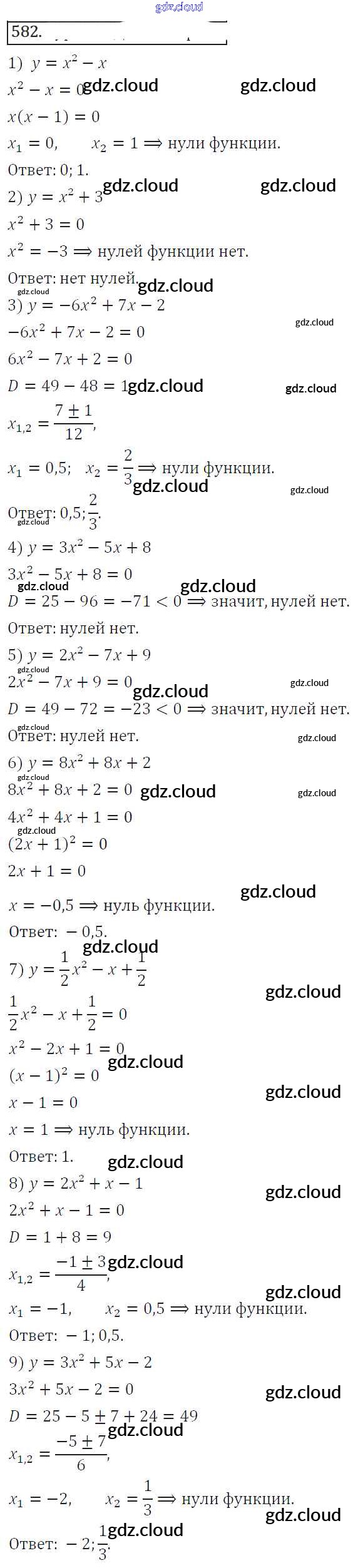 Ответ на задание 582 Учебник Алгебра за 8 (восьмой) класс Колягин, Ткачева, Федорова, Шабунин УМК 2013 ФГОС онлайн и без номера телефона.