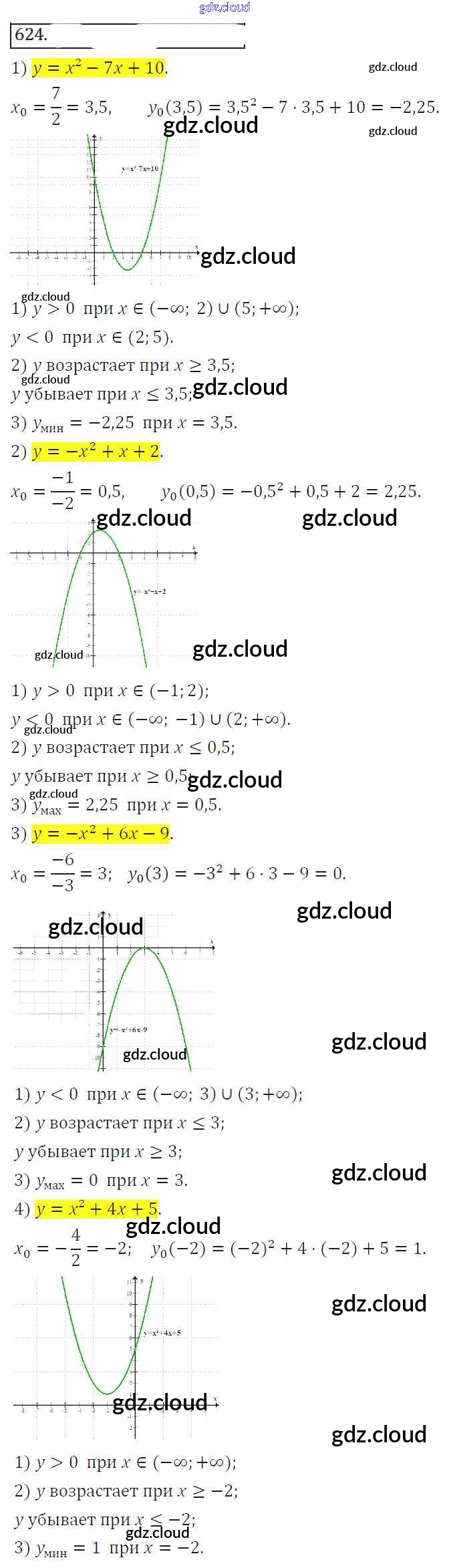 Ответ на задание 624 Учебник Алгебра за 8 (восьмой) класс Колягин, Ткачева, Федорова, Шабунин УМК 2013 ФГОС онлайн и без номера телефона.