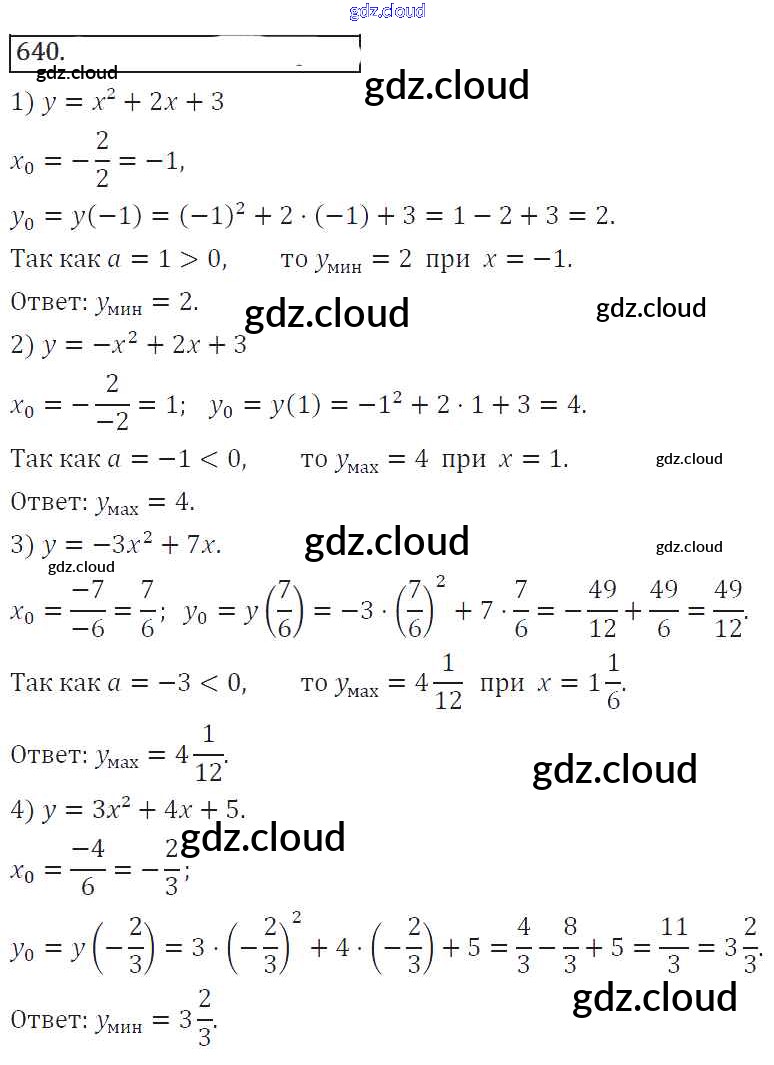 Ответ на задание 640 Учебник Алгебра за 8 (восьмой) класс Колягин, Ткачева, Федорова, Шабунин УМК 2013 ФГОС онлайн и без номера телефона.