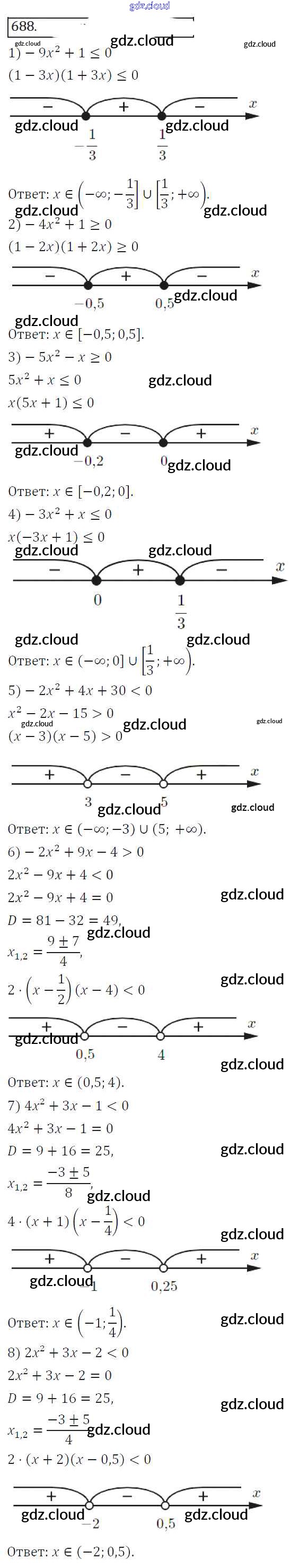 Ответ на задание 688 Учебник Алгебра за 8 (восьмой) класс Колягин, Ткачева, Федорова, Шабунин УМК 2013 ФГОС онлайн и без номера телефона.