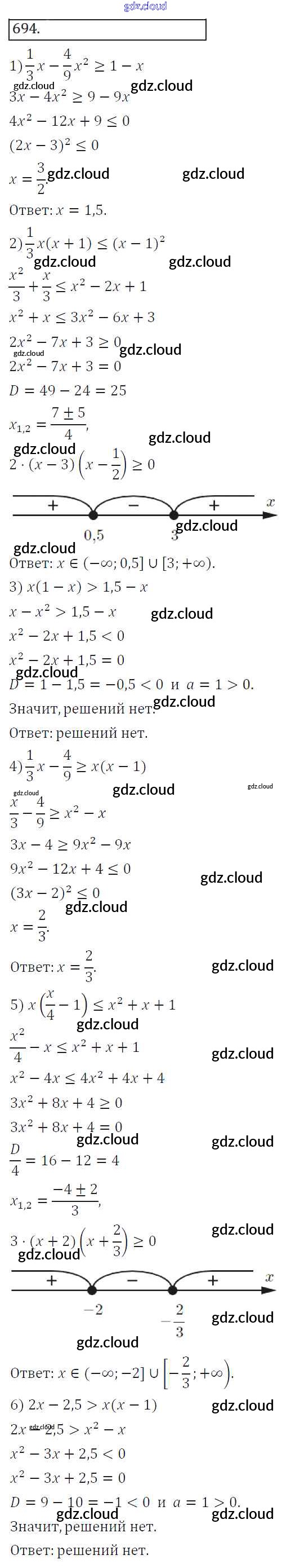 Ответ на задание 694 Учебник Алгебра за 8 (восьмой) класс Колягин, Ткачева, Федорова, Шабунин УМК 2013 ФГОС онлайн и без номера телефона.