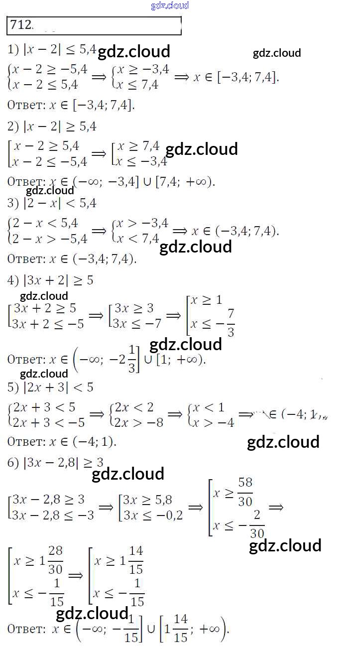 Ответ на задание 712 Учебник Алгебра за 8 (восьмой) класс Колягин, Ткачева, Федорова, Шабунин УМК 2013 ФГОС онлайн и без номера телефона.