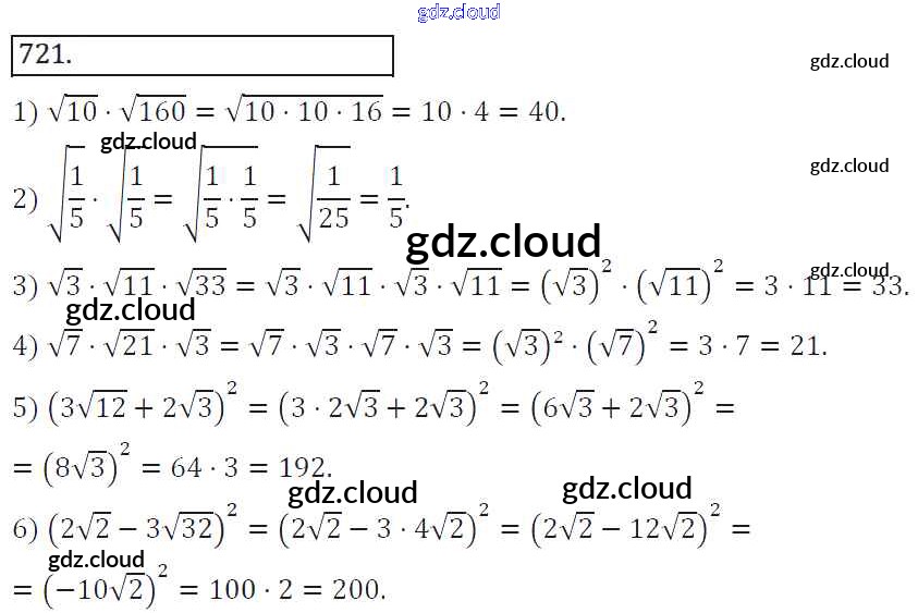 Ответ на задание 721 Учебник Алгебра за 8 (восьмой) класс Колягин, Ткачева, Федорова, Шабунин УМК 2013 ФГОС онлайн и без номера телефона.