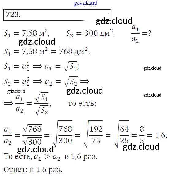 Ответ на задание 723 Учебник Алгебра за 8 (восьмой) класс Колягин, Ткачева, Федорова, Шабунин УМК 2013 ФГОС онлайн и без номера телефона.