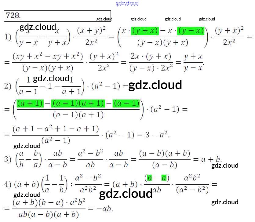 Ответ на задание 728 Учебник Алгебра за 8 (восьмой) класс Колягин, Ткачева, Федорова, Шабунин УМК 2013 ФГОС онлайн и без номера телефона.