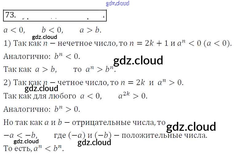 Ответ на задание 73 Учебник Алгебра за 8 (восьмой) класс Колягин, Ткачева, Федорова, Шабунин УМК 2013 ФГОС онлайн и без номера телефона.