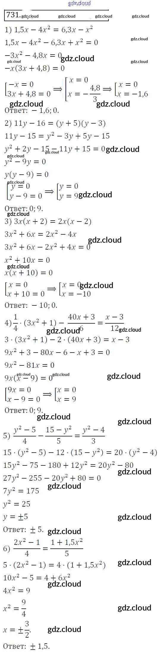 Ответ на задание 731 Учебник Алгебра за 8 (восьмой) класс Колягин, Ткачева, Федорова, Шабунин УМК 2013 ФГОС онлайн и без номера телефона.