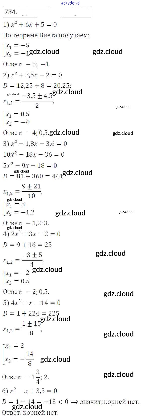 Ответ на задание 734 Учебник Алгебра за 8 (восьмой) класс Колягин, Ткачева, Федорова, Шабунин УМК 2013 ФГОС онлайн и без номера телефона.