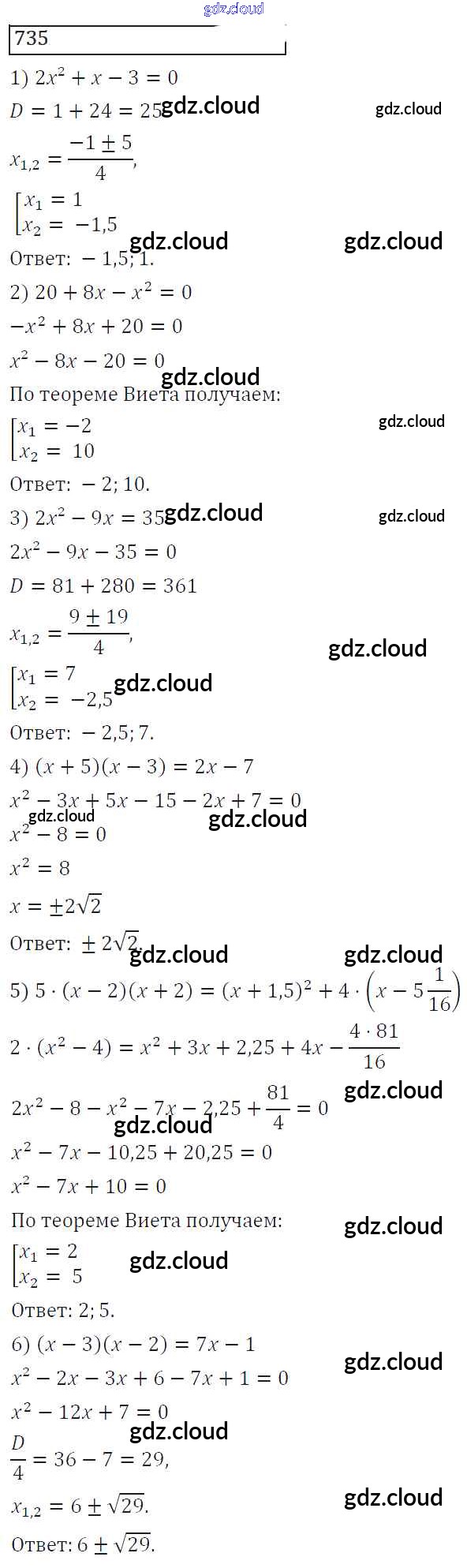 Ответ на задание 735 Учебник Алгебра за 8 (восьмой) класс Колягин, Ткачева, Федорова, Шабунин УМК 2013 ФГОС онлайн и без номера телефона.
