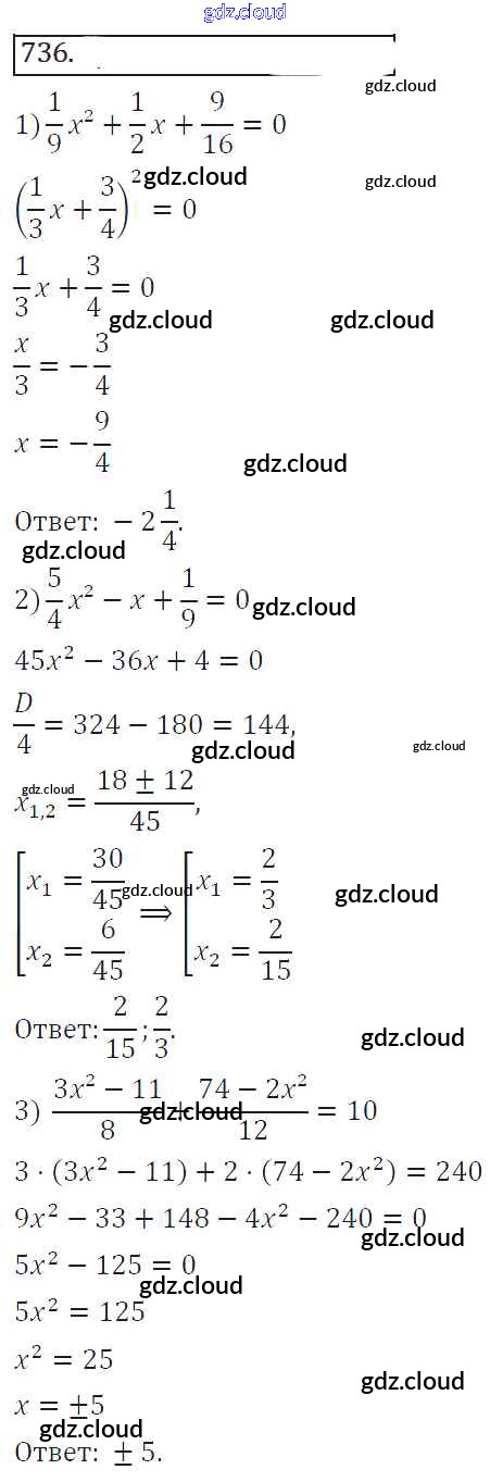 Ответ на задание 736 Учебник Алгебра за 8 (восьмой) класс Колягин, Ткачева, Федорова, Шабунин УМК 2013 ФГОС онлайн и без номера телефона.