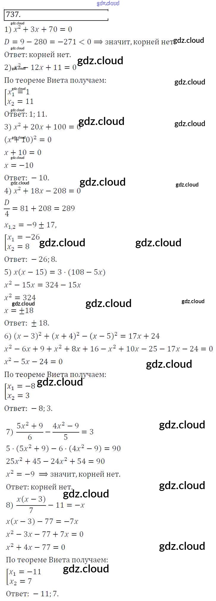 Ответ на задание 737 Учебник Алгебра за 8 (восьмой) класс Колягин, Ткачева, Федорова, Шабунин УМК 2013 ФГОС онлайн и без номера телефона.
