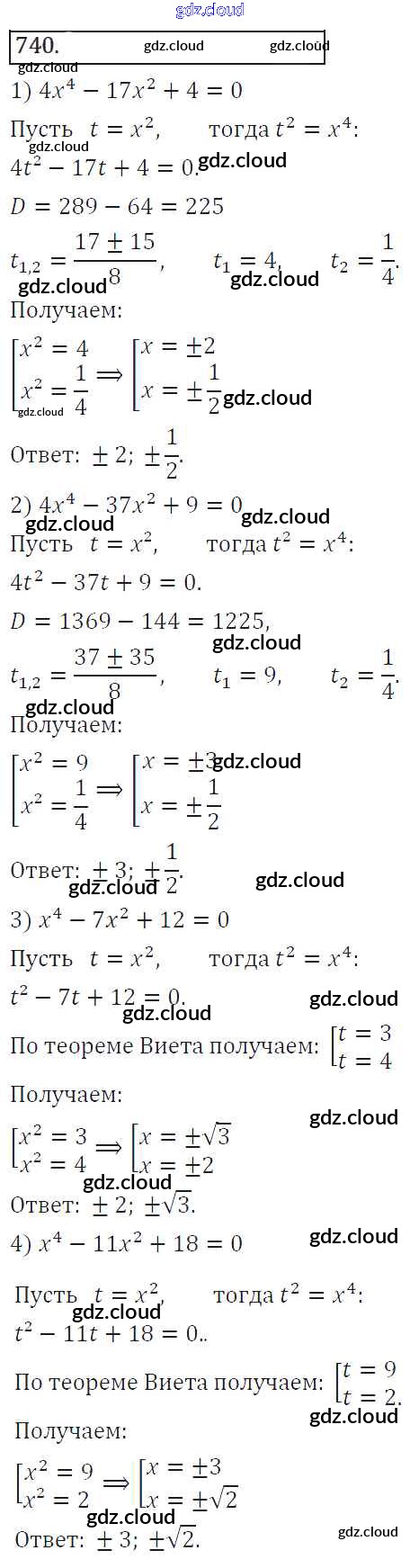 Ответ на задание 740 Учебник Алгебра за 8 (восьмой) класс Колягин, Ткачева, Федорова, Шабунин УМК 2013 ФГОС онлайн и без номера телефона.