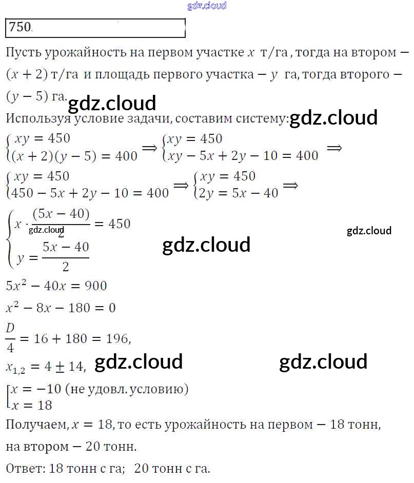 Ответ на задание 750 Учебник Алгебра за 8 (восьмой) класс Колягин, Ткачева, Федорова, Шабунин УМК 2013 ФГОС онлайн и без номера телефона.