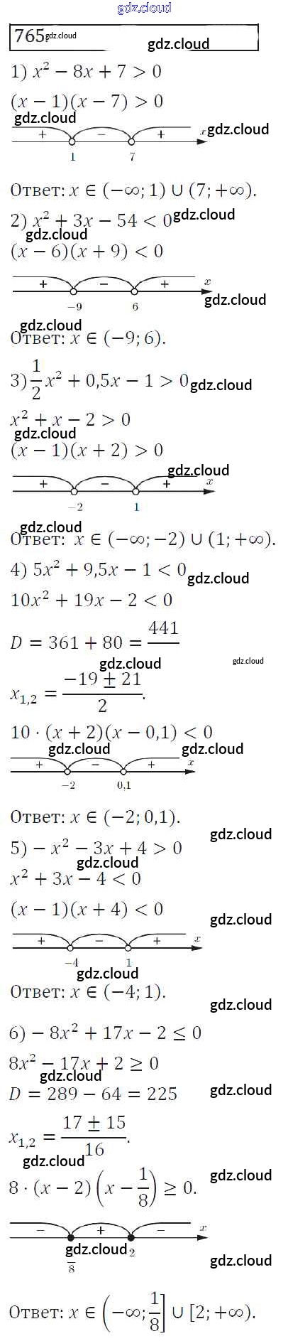 Ответ на задание 765 Учебник Алгебра за 8 (восьмой) класс Колягин, Ткачева, Федорова, Шабунин УМК 2013 ФГОС онлайн и без номера телефона.
